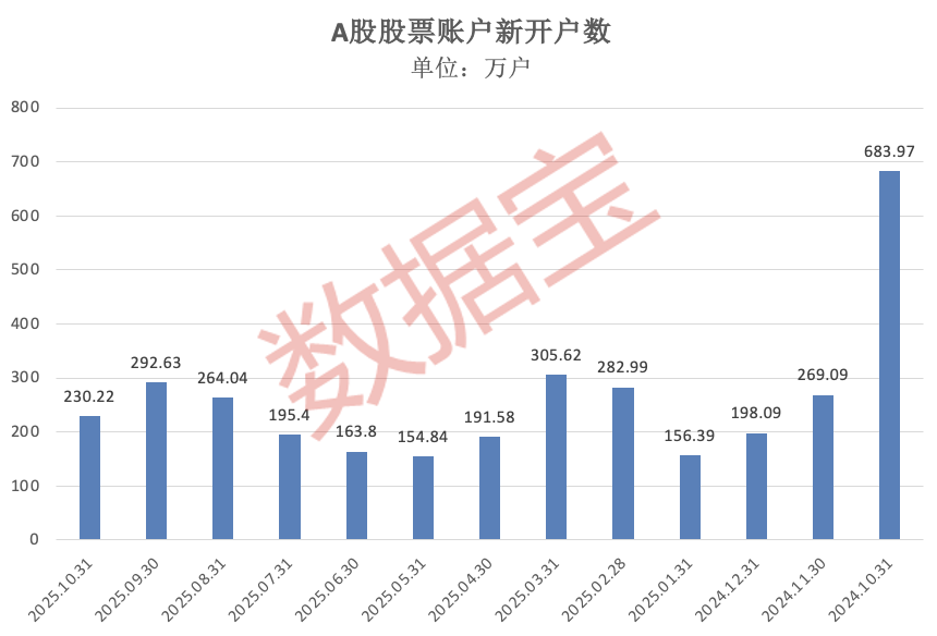 前10个月,个人投资者A股股票账户累计新开户数为2237.51万户;截至2025年10月31日,个人投资者A股累计总账户数为3.91亿户。